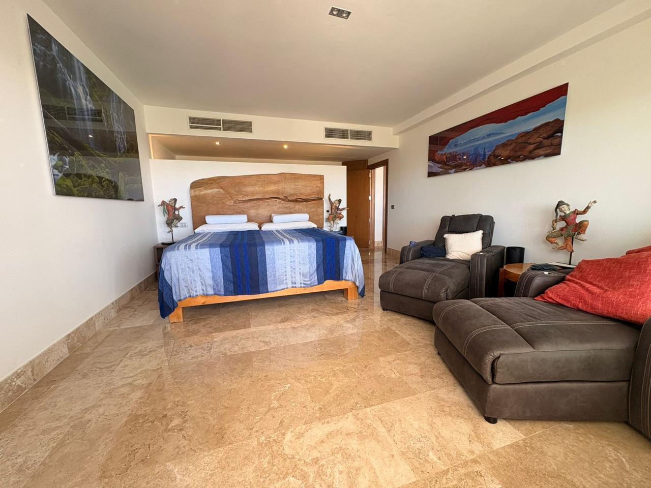 The condo also includes two private parking spaces and comes decorated with a curated art collection valued at approximately $50,000 USD, adding unique character and investment value.