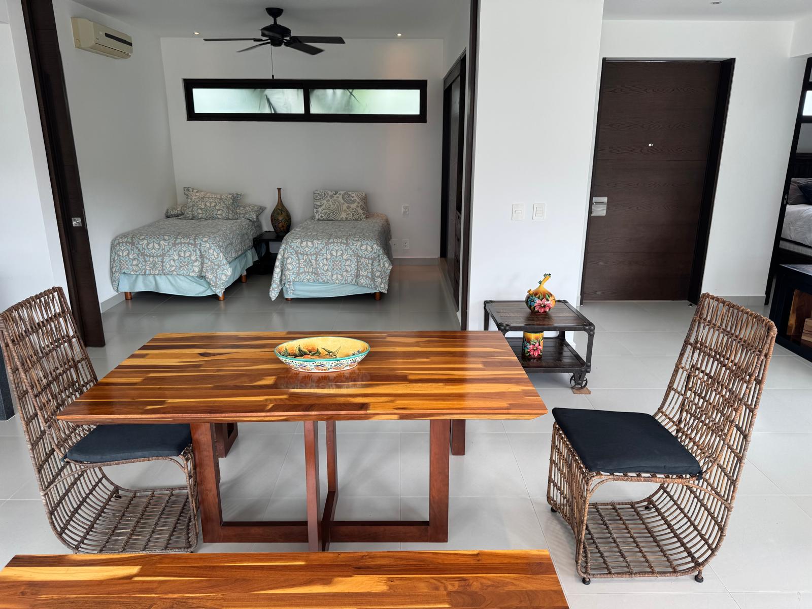 Todas las salas de estar cuentan con aire acondicionado y ventiladores de techo. El condominio goza de una ubicación ideal junto a una de las piscinas de TAO, con vistas al campo de golf.