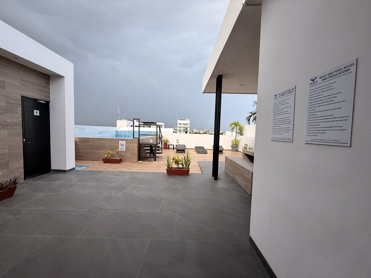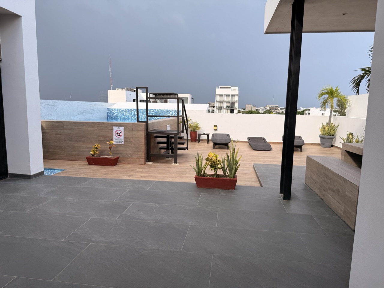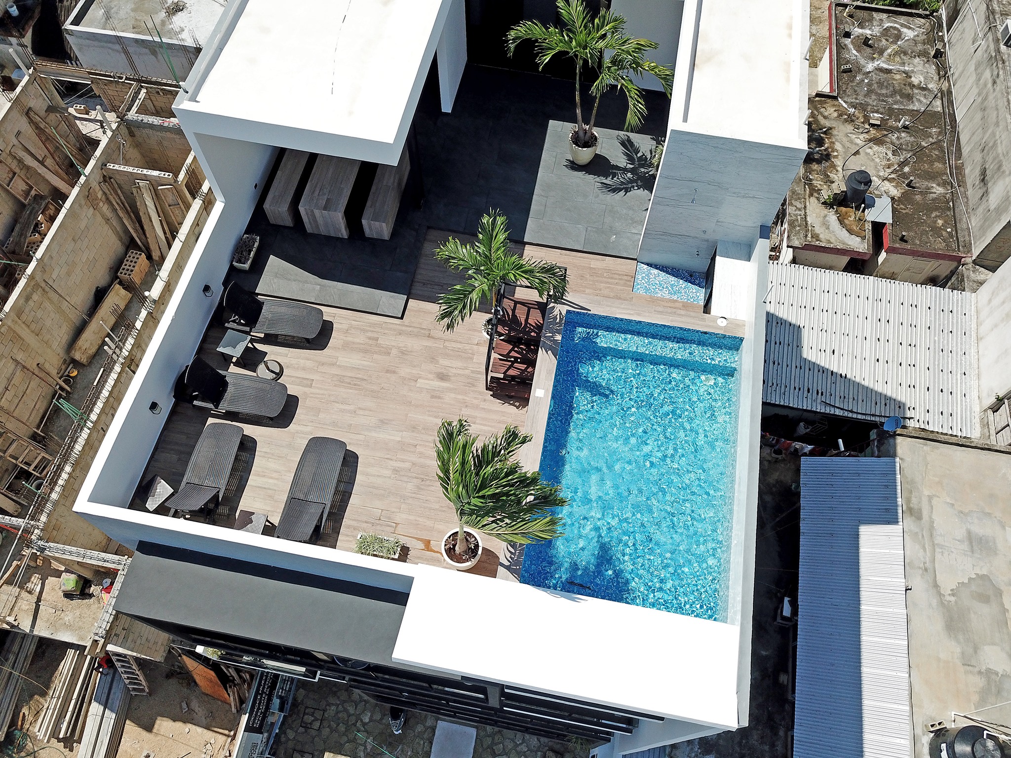 Rooftop pool with lounge chairs and a social area ideal for relaxing or entertaining