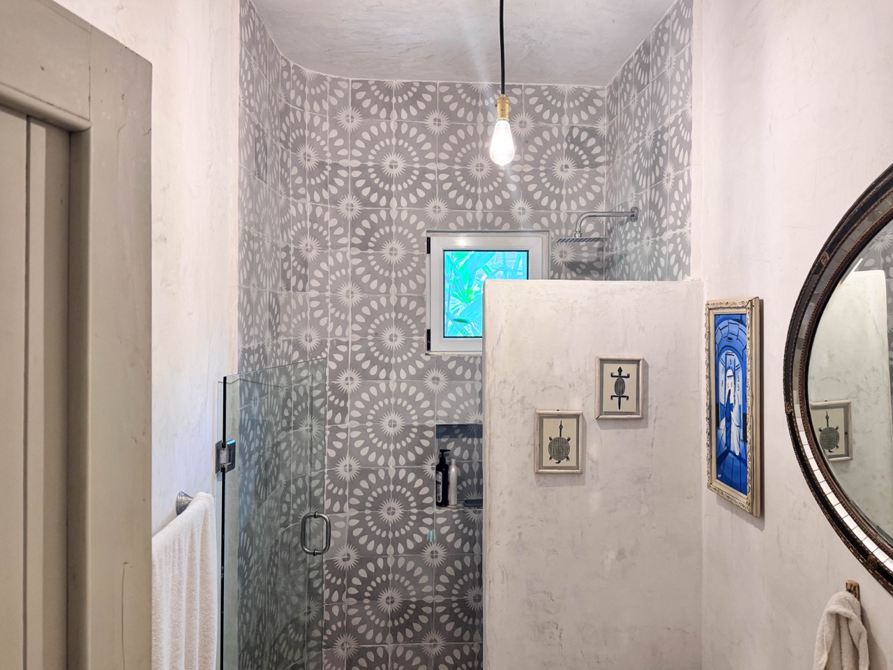 - Private terrace with decorative fountain surrounded by lush vegetation